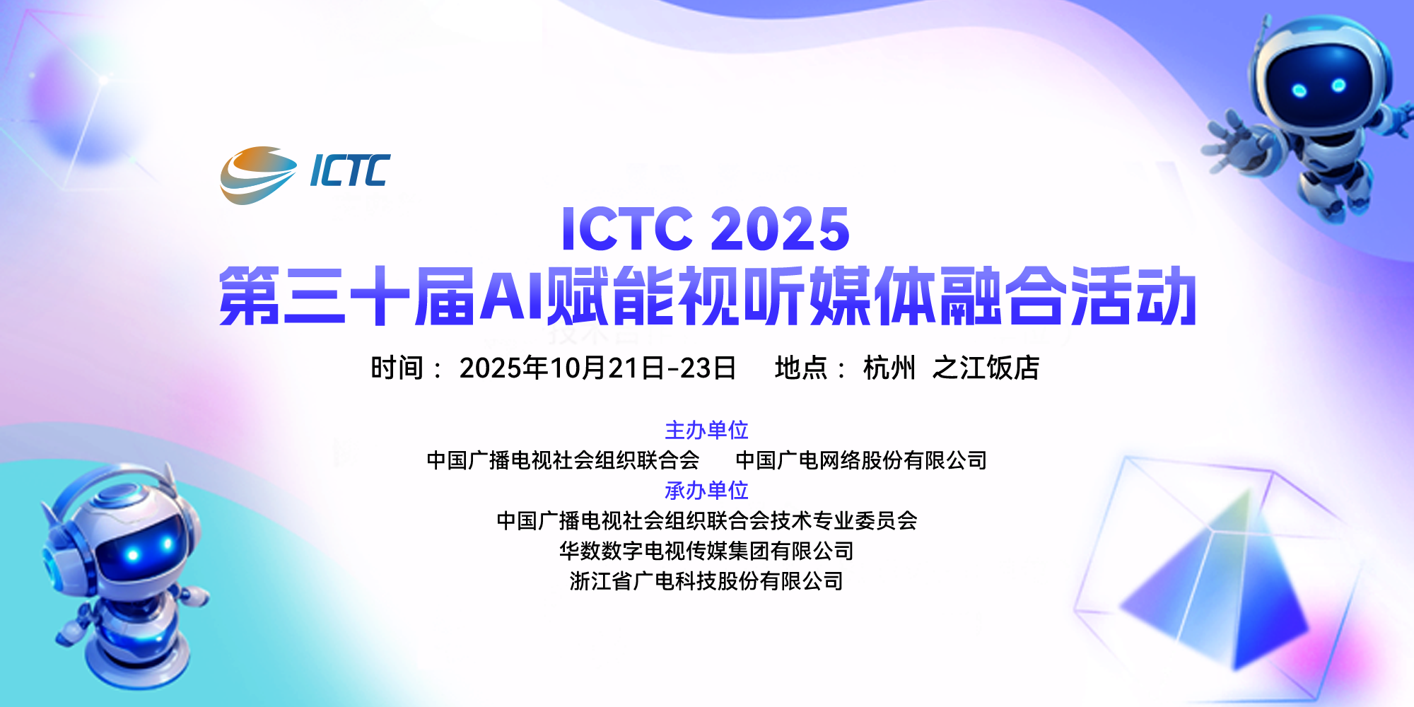 为加快推动广播电视网络视听高质量发展,探索"AI+广电"协同发展新生态,“媒体融合技术研讨会”更名为“AI赋能视听媒体融合活动”(ICTC)。“第三十届AI赋能视听媒体融合活动”(ICTC2025)定于2025年10月21日-23日在杭州之江饭店举办。本届活动将以“人工智能”和“超高清”为核心议题,紧密围绕总局的重点工作及行业发展热点,就“人工智能、超高清、新型广电网络、广电5G业务、智能电视终端、公共服务与应急广播、视听大数据、融合媒体制播云平台、智慧广电、物联网、网络视听安全与监管”等议题进行研讨和演示。活动将邀请总局、总台相关领导、广播电视科研机构、内容制作机构、播出机构、传输机构、厂商专家到会发表讲演。